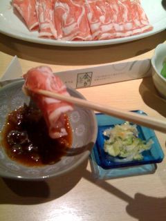 生でいただく薄切りラムは、しゃぶしゃぶしたお肉とはまた違ったくせのない甘みが美味。